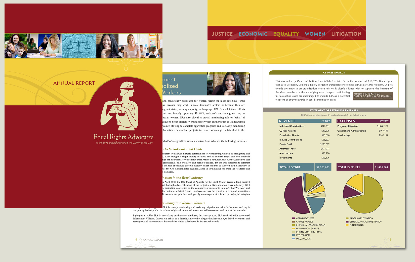 Equal Rights Advocates has advocated for women’s equality for more than 30 years, their mission is to protect and secure equal rights and economic opportunities for women and girls since 1974. LaserCom Designed is proud to have designed several annual reports for the organization.