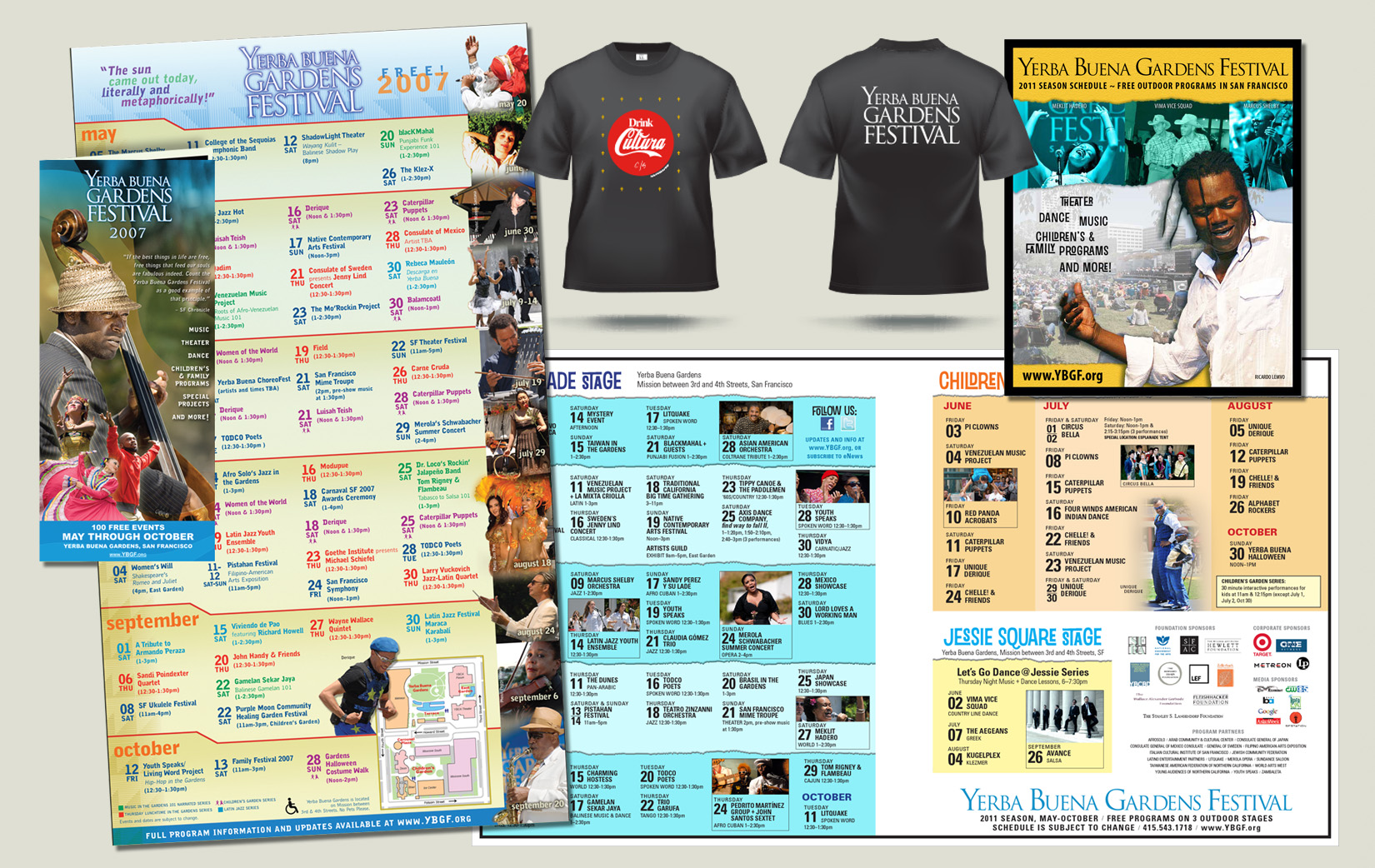 The Yerba Buena Gardens Festival is the premier outdoor arts and cultural free festival in the USA. Every year YBGF presents music, theater, dance, cultural events, educational and children’s programs at the gardens in San Francisco. LaserCom has designed their brochure, calendars, ads and posters for the events in many occasions.