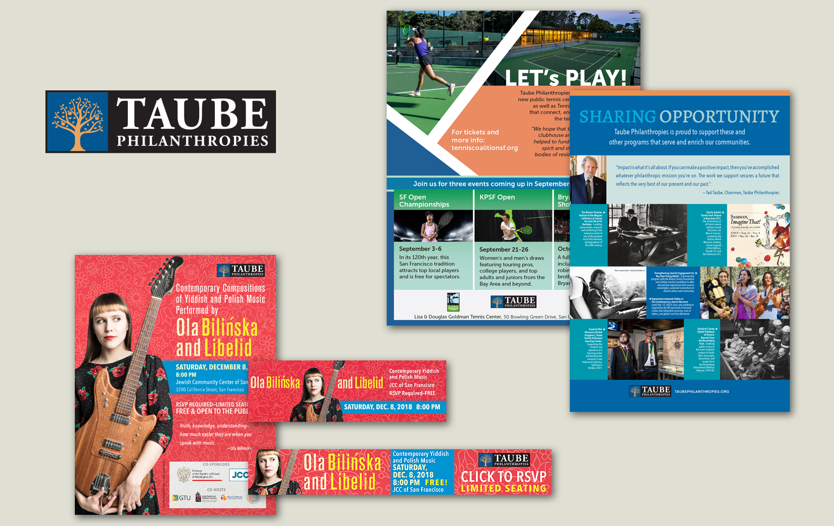 Taube Philanthropies has provided leadership for educational, cultural and civic organization that bring Jewish cultural renewal and heritage preservation in San Francisco and Greater Bay Area communities for over 30 years. Taube has trusted LaserCom Design to create a variety of design projects that promote Jewish heritage and cultural celebration.