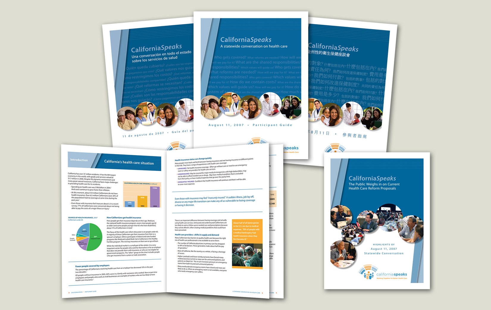 Thousands of Californians from every walk of life joined a statewide discussion to evaluate proposals for reforming California’s health care system. When CaliforniaSpeaks needed help in producing the layout for their final report in three different languages, they came to LC Design for our multilingual capabilities.