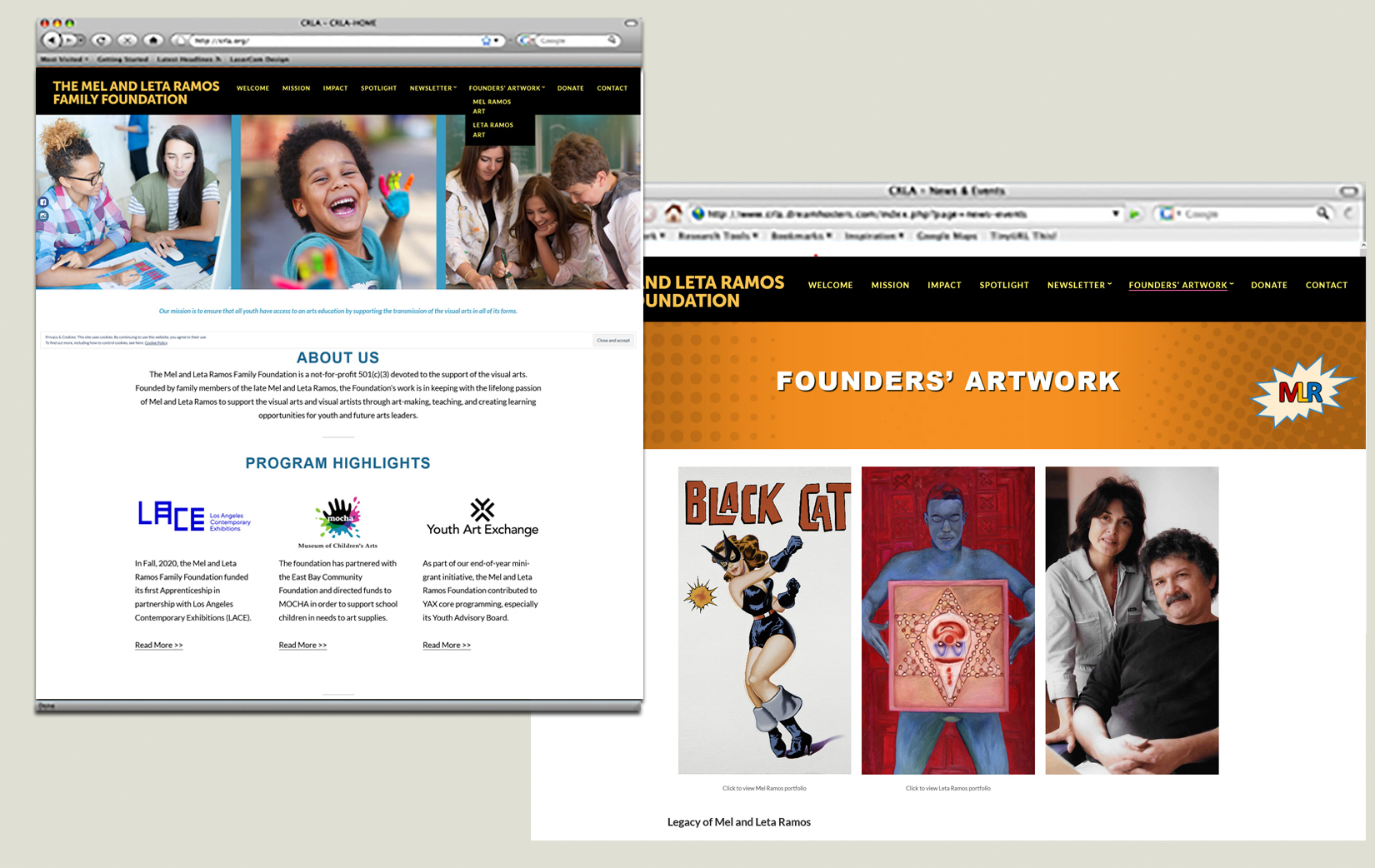 The Mel and Leta Ramos Family Foundation is devoted to the support of the visual arts. Founded by family members of the late Mel and Leta Ramos, the Foundation's work is in keeping with the lifelong passion of Mel and Leta Ramos to support the visual arts and visual artists through art-making, teaching, and creating learning opportunities for youth and future arts leaders.